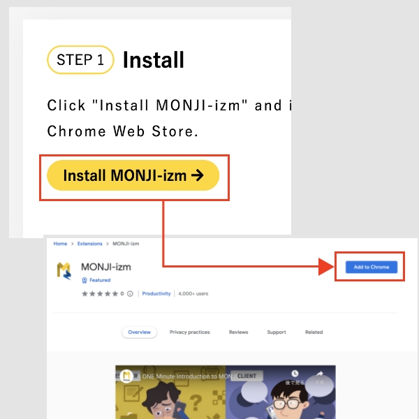 Click the “Install MONJI-izm” button below to add the free extension from the Chrome Web Store.